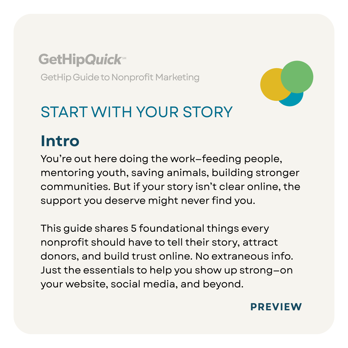 You don’t necessarily need a big budget to make a big impact. You just need clarity, consistency, and a little marketing strategy that fits your mission—not the other way around. This is the practical, clear-cut guide your nonprofit needs to stand out, raise funds, and keep people engaged. The Getting Started Series guide pack includes:
